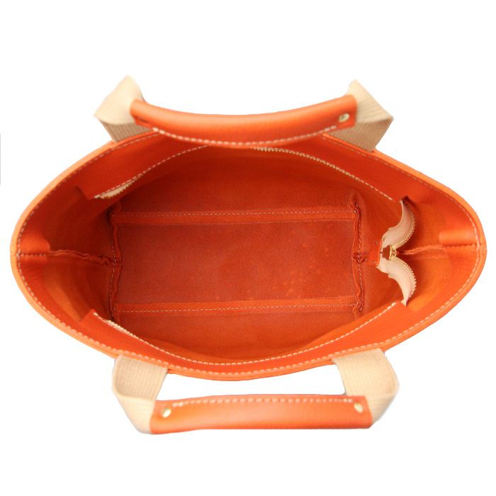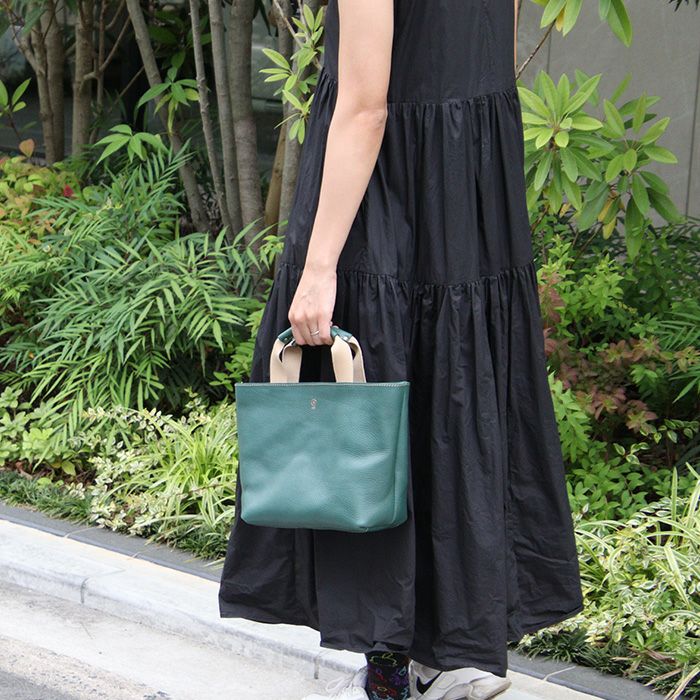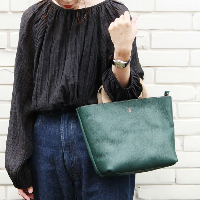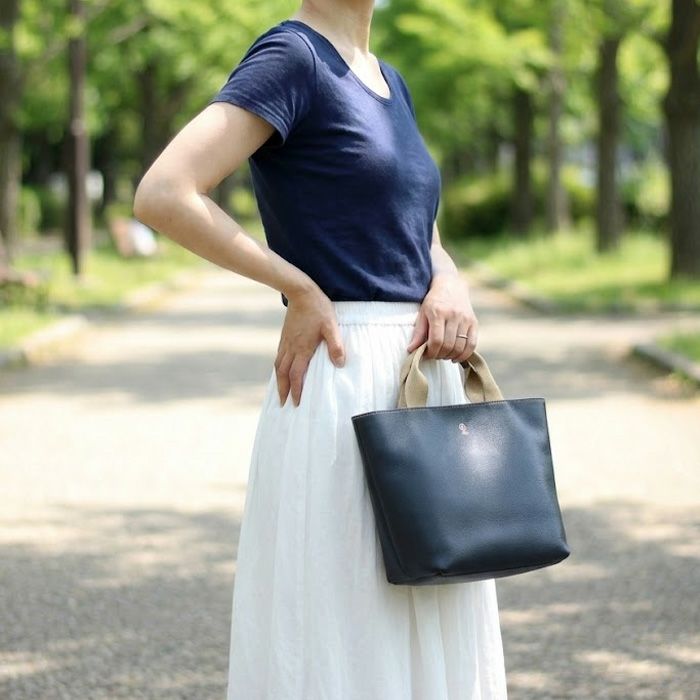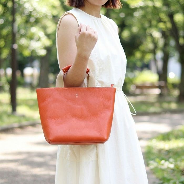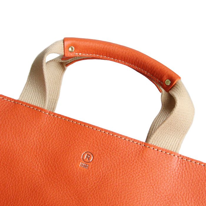 持ち手 アクリルテープにレザーを合わせた持ち手。上部にレザーを重ねているので耐久性においても優れた作りとなっています。