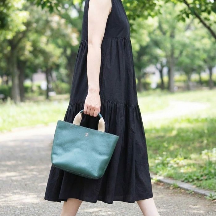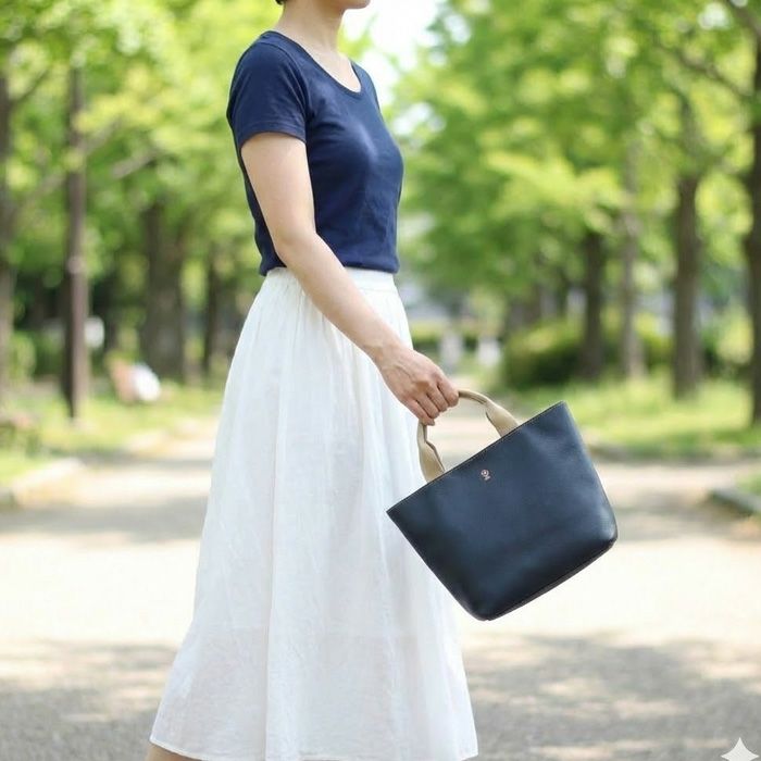 スーツに合わせたビジネスカジュアル、シンプルなトップスやデニムと合わせてバッグを主役にしたコーディネート、