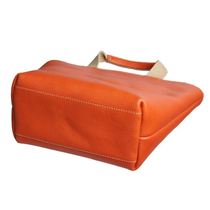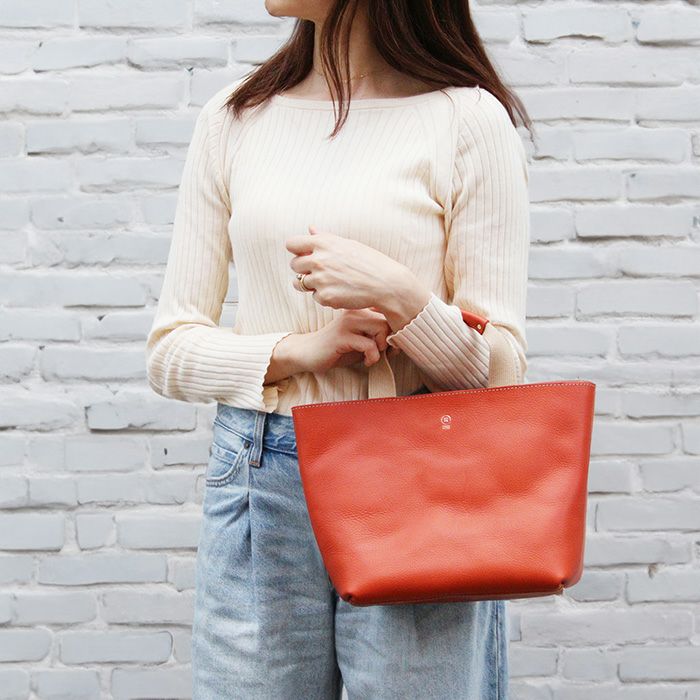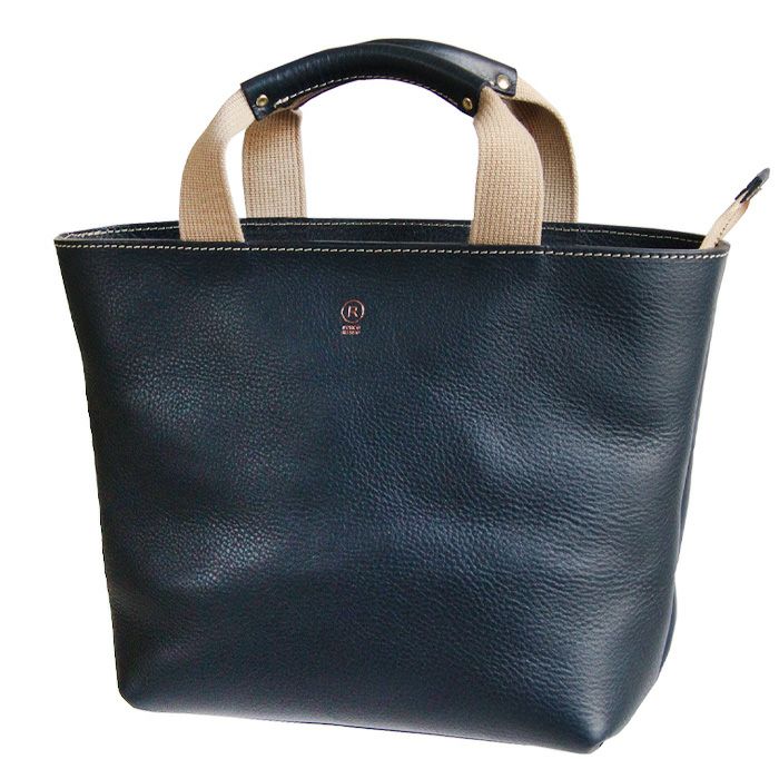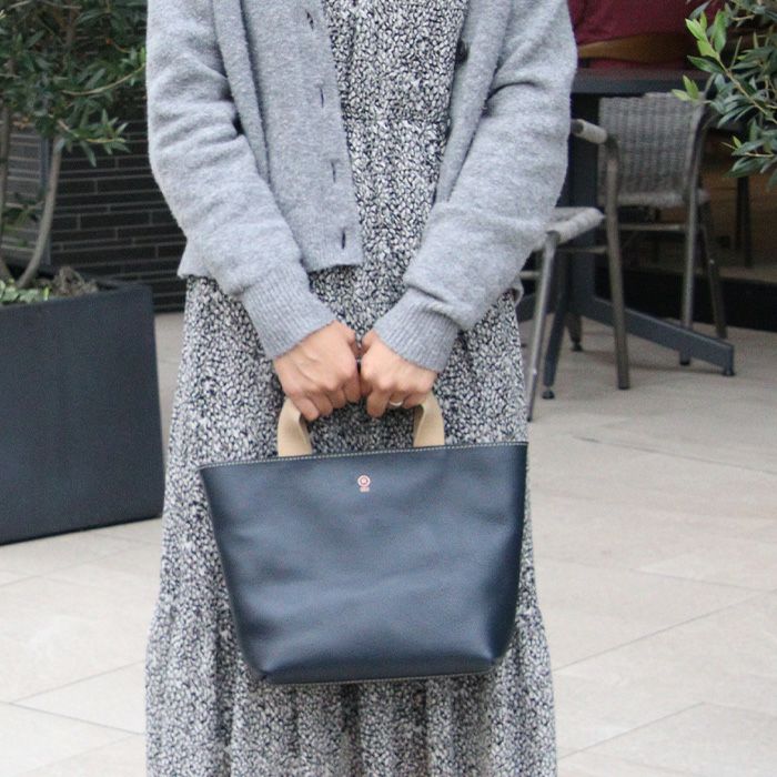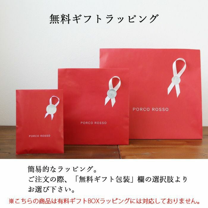 前面 シンプルデザインのトートバッグ。前面にはピンクゴールドのPORCO ROSSO刻印を施しています。