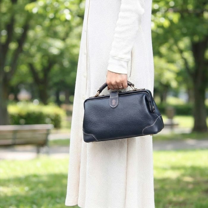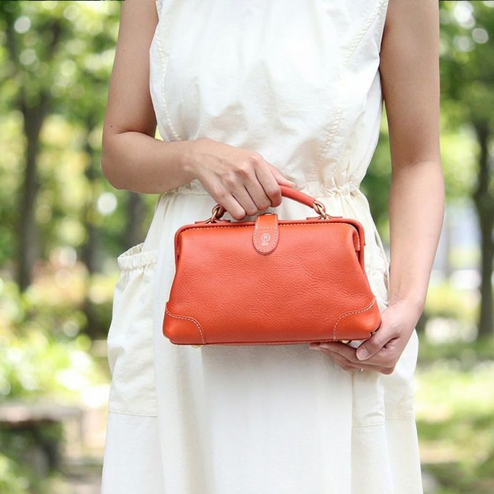 大人の女性に持ってほしい、がま口のレザーバッグ