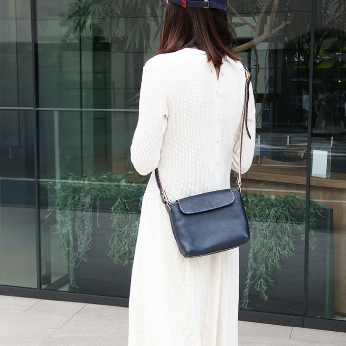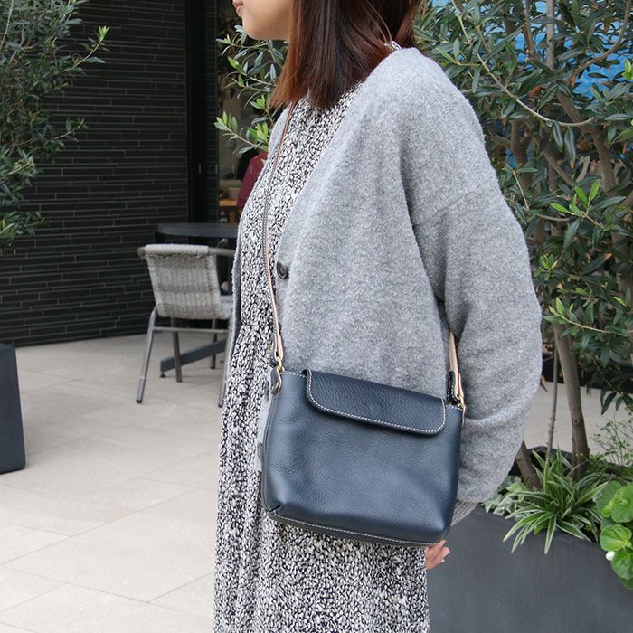 街歩きに最適なかぶせ付きのコンパクトショルダーは男女問わずお使い頂けるモデルとして開発しました。