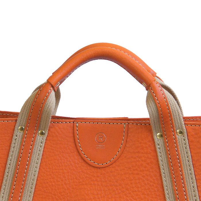 持ち手 アクリルテープにレザーを重ねた持ち手。上部にレザーを重ねてあるので耐久性においてもより優れた作りとなっています。