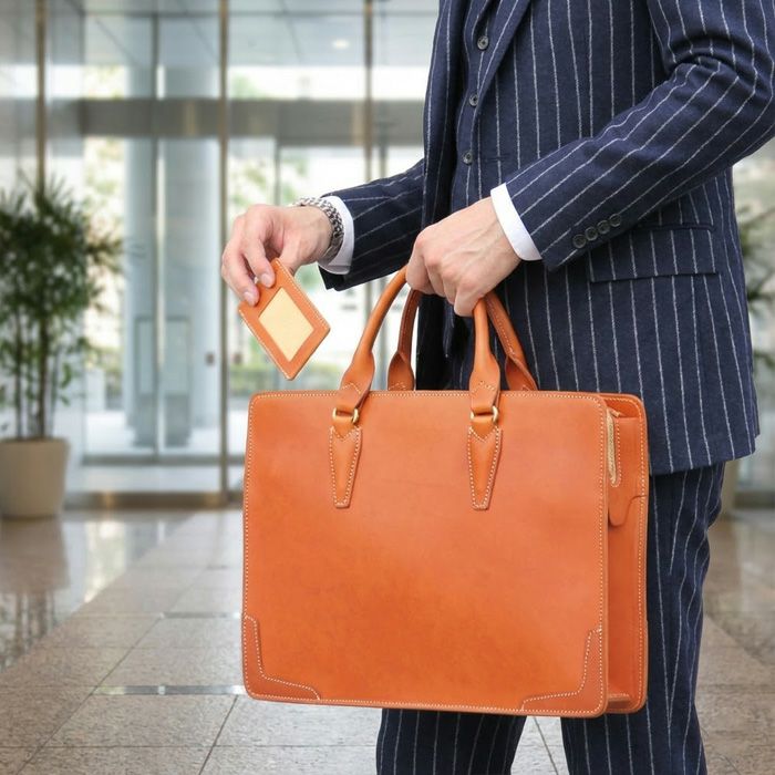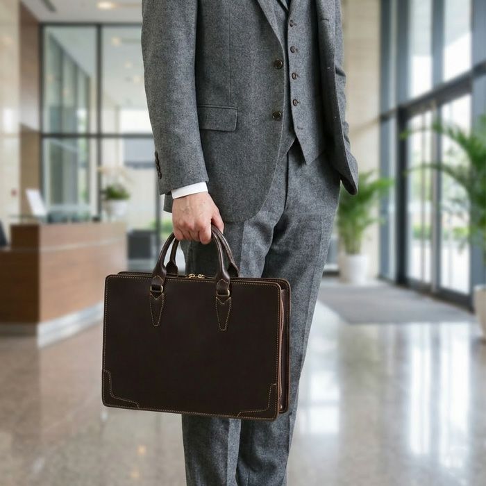 ビジネスシーンの端整なスタイルに映える本格派のブリーフケースは、使う者に品格と自信を与え、行動力を高めてくれるだろう。
