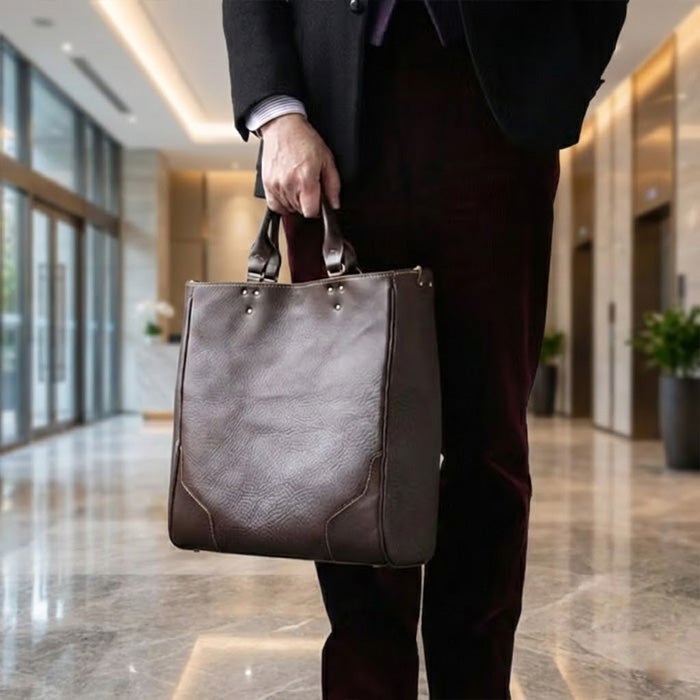 革そのものの重厚感がたまらない魅力を放つ、2WAY仕様のビジネスバッグ
