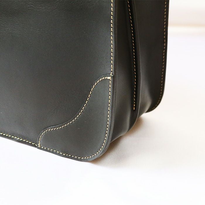 ソフトとハードの2種類の革を組み合わせ、経年変化しても革のクッタリ感が、鞄の表情として活きる様にとバランスを考えて構築しました。