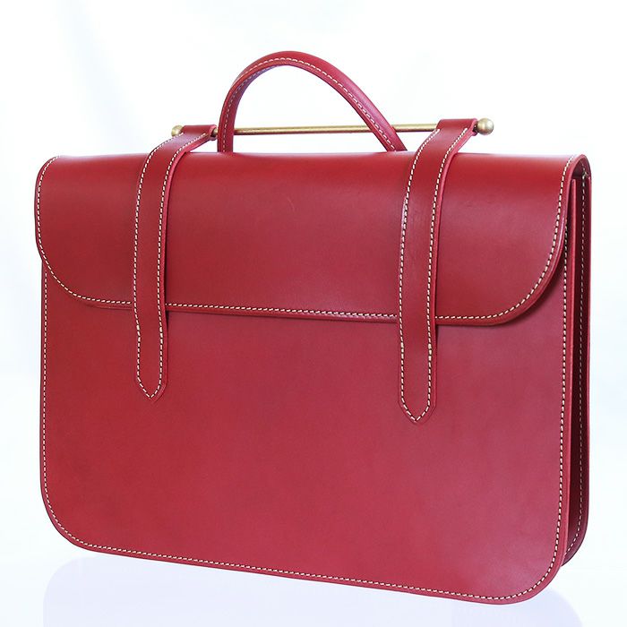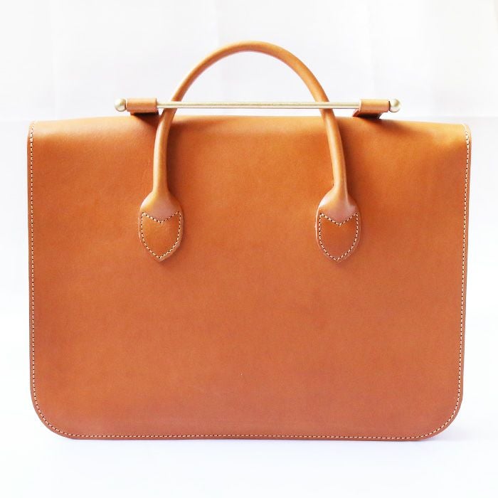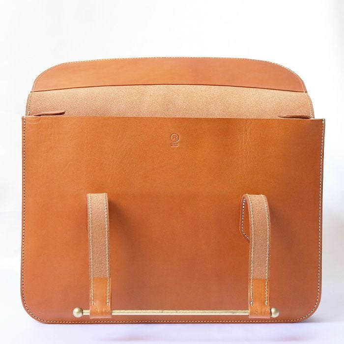 ハンドル部に真鍮の棒を引っ掛けるという、独特な作りがこのデザインの魅力の1つ。伝統あるミュージックバッグだからこそ、無駄な装飾も付けず、本来の機能・デザインをそのままに仕立てあげました。