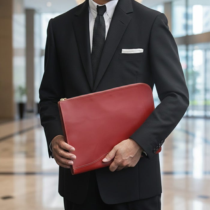 クラッチバッグとしてはもちろん、ビジネスバッグに忍ばせ、書類を持ち運ぶにも重宝するマルチバッグです。