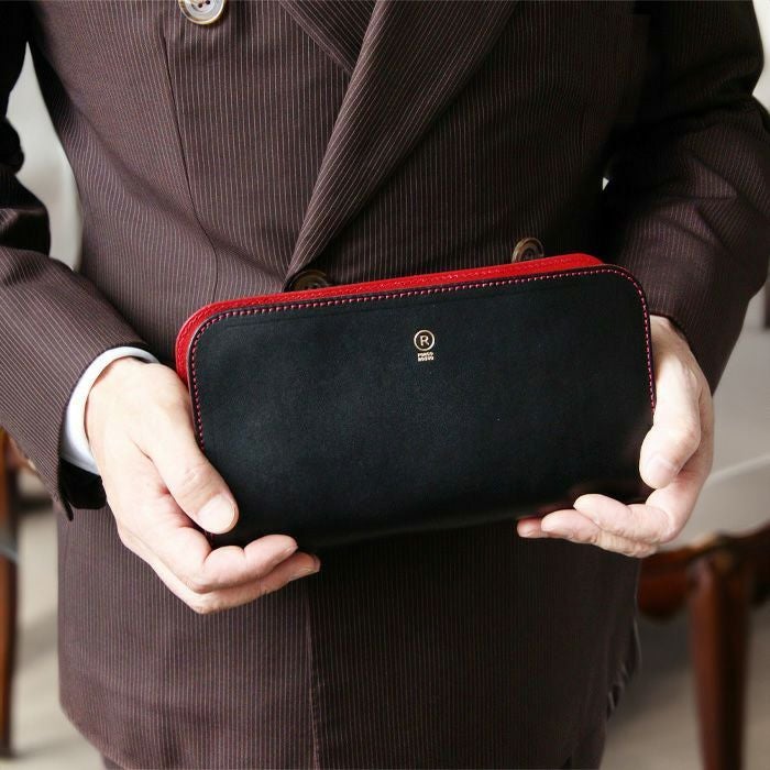 ステマチという技法を用いて仕立てられたクラッチバッグ。1枚革を贅沢に使用し、持ち心地の良さ・見た目の美しさにこだわりました。長財布が綺麗に納まるサイズです。