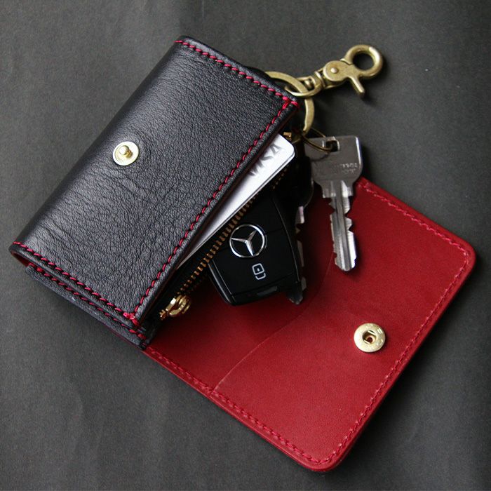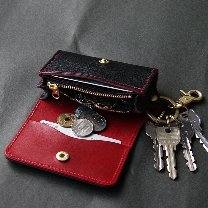 今までにはないブラック×レッドのツートンカラー仕様。 目を惹くレッドステッチ、内部にもこだわりレッドの革を張り合わせました。
