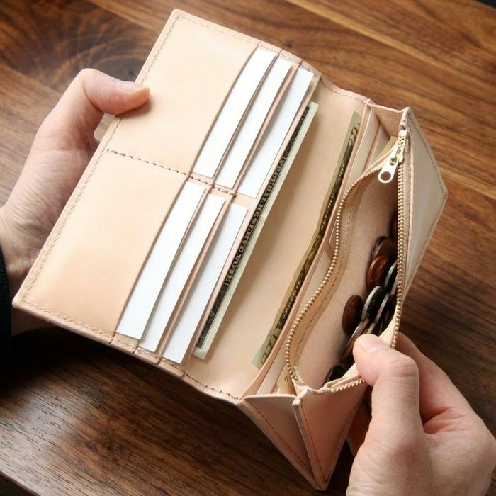 内部 内部はヌメ革仕様。実際の使いやすさを追求し、カード入れを財布の奥に設置しました。 内装もシンプルに仕上げています。