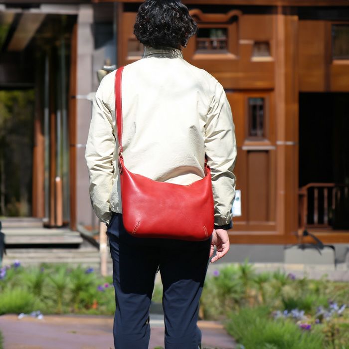 レザーのしなやかさを強調した大きめデザインのショルダーバッグは、iPadも収納できる優秀サイズと丹念な作りからクラス感が冴え、大人の風格を際立たせる。
