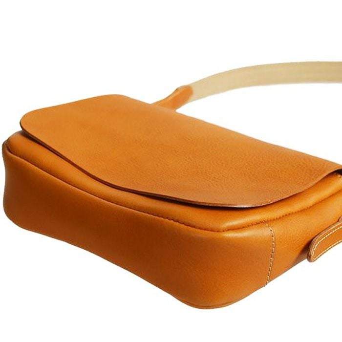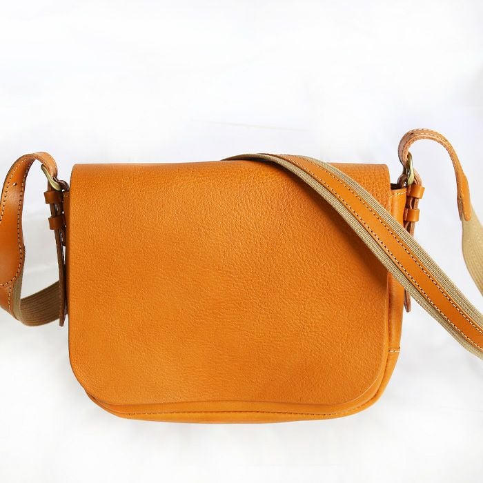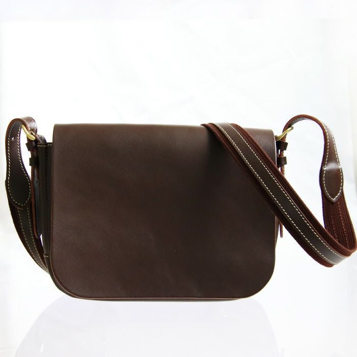 ショルダーバッグデザインとしては定番中の定番である総かぶせのショルダーバッグ。無駄な装飾が一切ないデザインで、革の経年変化を楽しめる、革鞄では時に人気の高いモデルです。