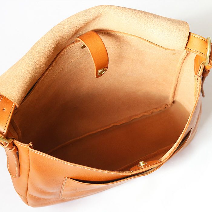 革の経年変化を思う存分楽しめる、総かぶせのショルダーバッグ
