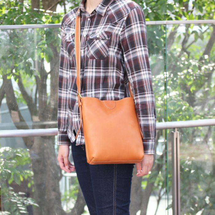 Sサイズは、長財布や文庫本などの高さのある荷物を入れても、きちんと封ができる様に設計をした縦シルエットの美しいショルダーバッグです。