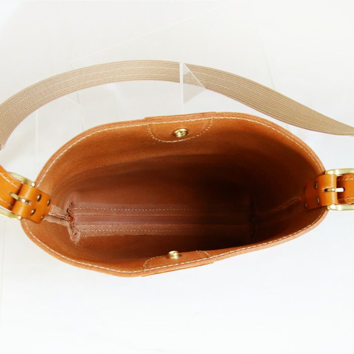 本革の持ち味をシンプルに活かした、カジュアル感が香るショルダーバッグ。