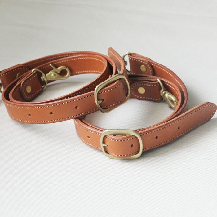 PORCO ROSSOのバッグをリュック加工した際に取り付けて頂くストラップとなります。毛羽立ちを抑えるために革を張り合わせて、2枚仕立てにするなど、使い手のことを考えて製作しました。使い込む程に肩によく馴染み、バッグとの一体感を味わえます。