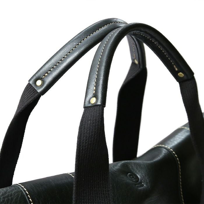 持ち手 テープを丈夫なレザーで丸く包んだ持ち手。長時間持っても手が痛くならないように配慮した形状です。テープ自体も強度があり、使い込んでも伸びることがありません。