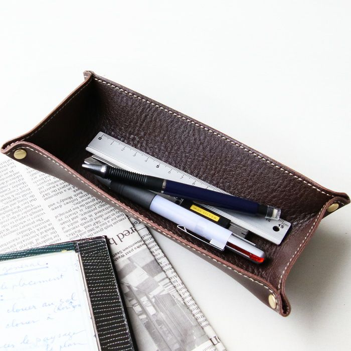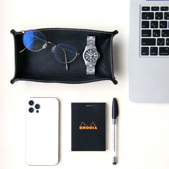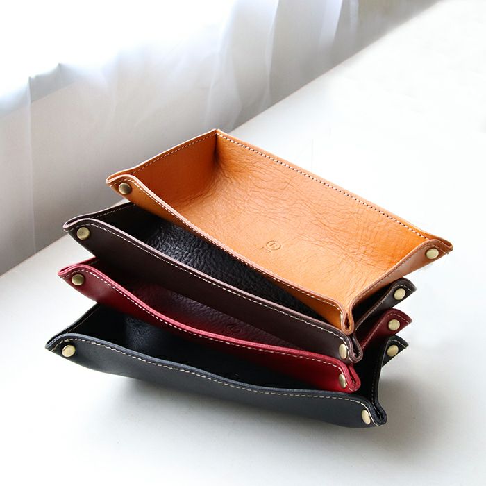 玄関先やデスクの上に、一つあると大変便利なトレー。帰宅時に鍵や時計といった提携品をまとめて入れておけば、細々した物を失くしてしまう心配もありません。 上質な革を2枚貼りしたことで完成した美しいラウンドフォルムとシンプルなデザインが、お部屋のインテリアにさり気ないぬくもりを呼び込みます。
