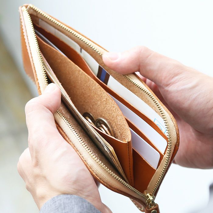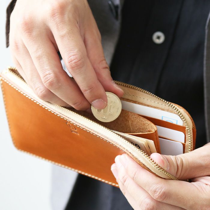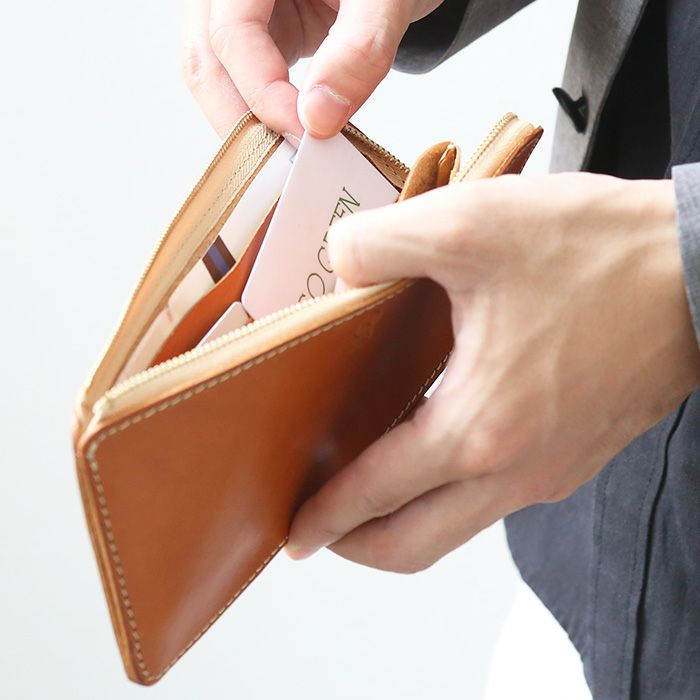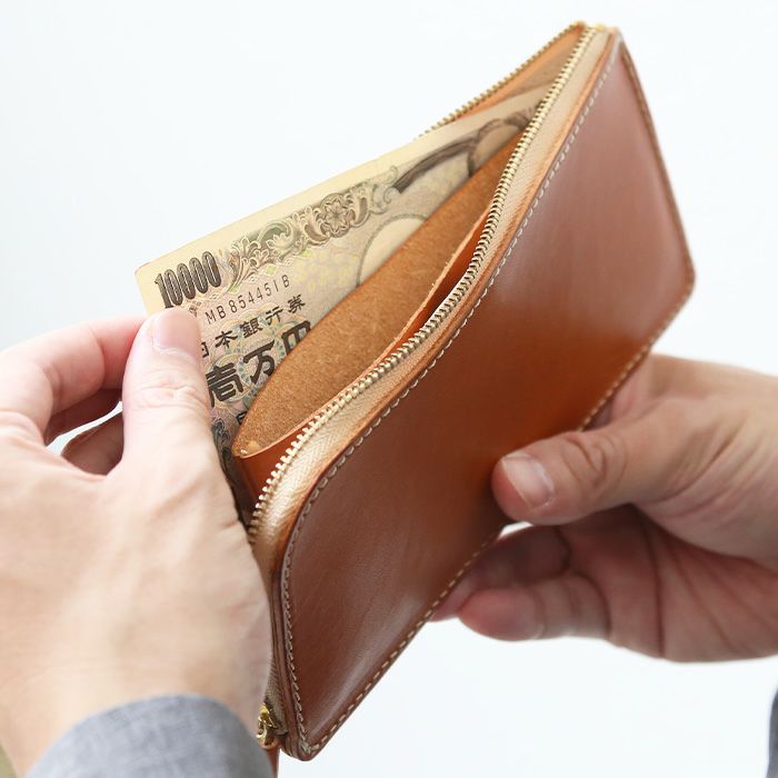 本革ならではの味わいもたっぷり楽しめる一品です。薄マチL字財布に比べて高さを5mm短くしたことで、よりスマートな印象になりました。