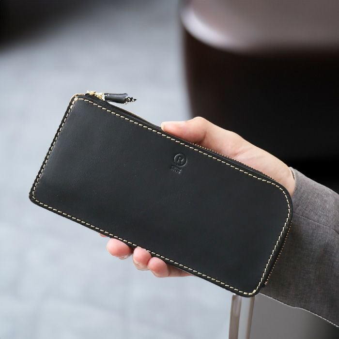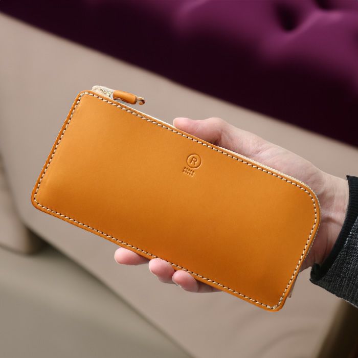 スマートになってもしっかりとお札が収まる・筒状の小銭入れから小銭が飛び出さない、等こだわって設計し、機能性も考慮して仕立てました。