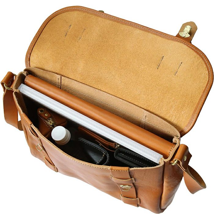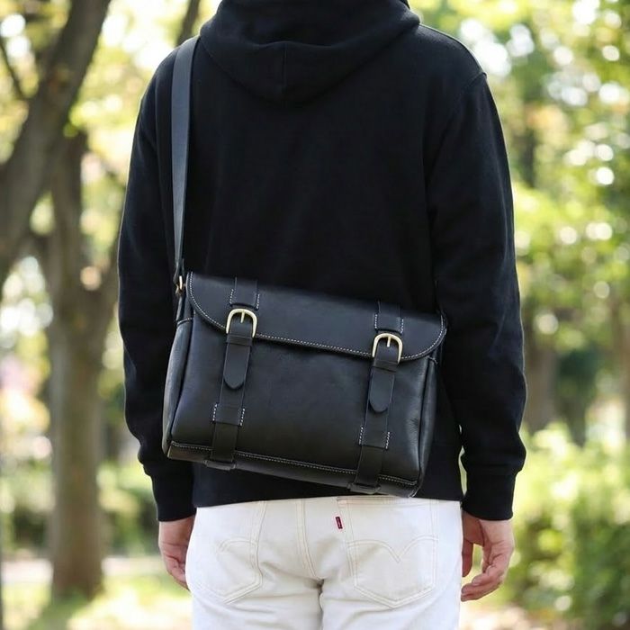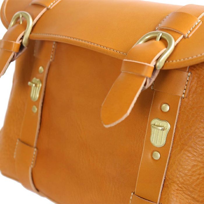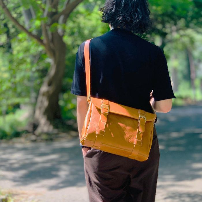 たっぷりと荷物が収まる大容量のショルダーバッグ。新しいレザーのギュッギュッという音も心地良い、素材感を手のひらに感じられるアイテムです。