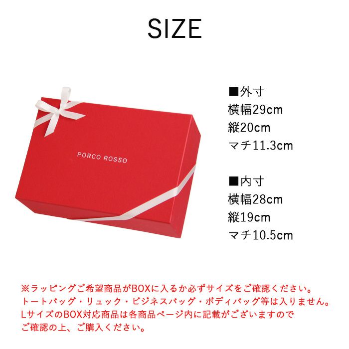 ボックスLサイズは対象のバッグ・小物のセットギフトでのラッピングとしてご利用くださいませ。