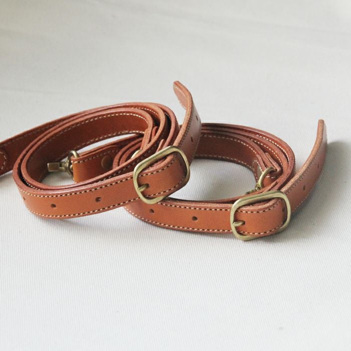 PORCO ROSSOのバッグをリュック加工した際に取り付けて頂くストラップとなります。毛羽立ちを抑えるために革を張り合わせて、2枚仕立てにするなど、使い手のことを考えて製作しました。使い込む程に肩によく馴染み、バッグとの一体感を味わえます。