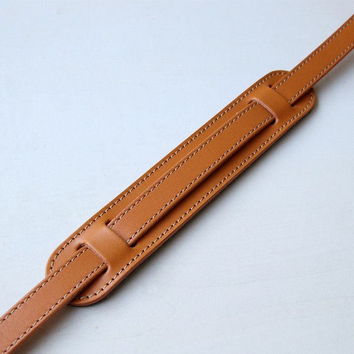 レザーショルダーストラップ用に開発した肩当です。「革で仕立てたショルダーストラップはカッコいいけど、
