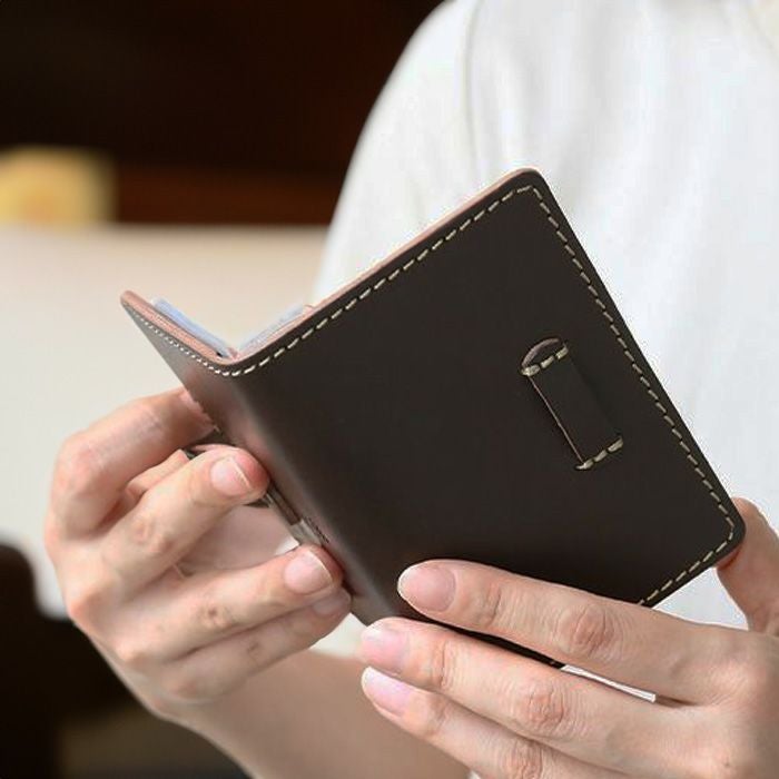親しみやすいベルトデザインは、枚数が増えて厚みが出てもしっかりとホールドしてくれる機能的な一面も。