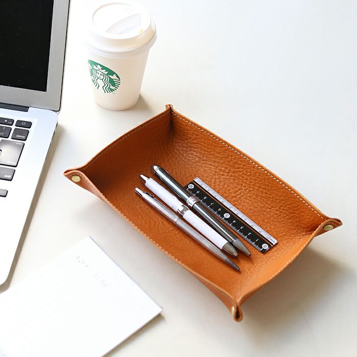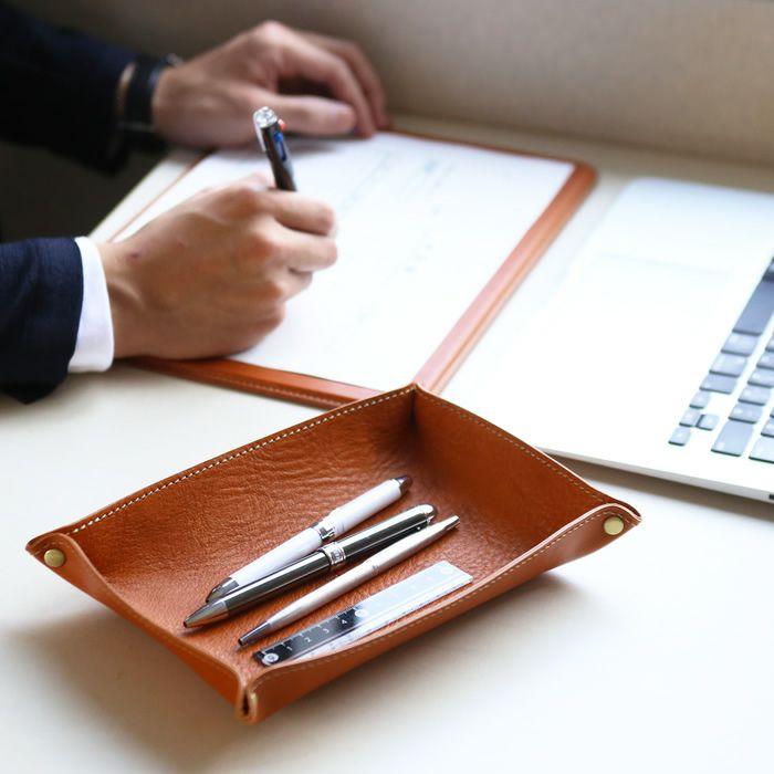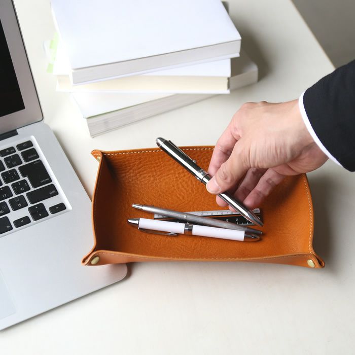 デスクまわりをすっきりさせる、レザーペントレー。