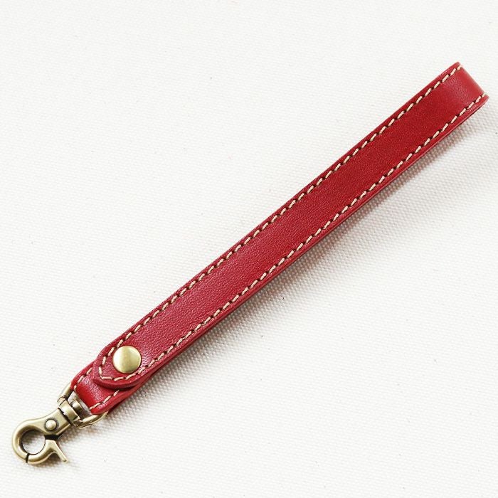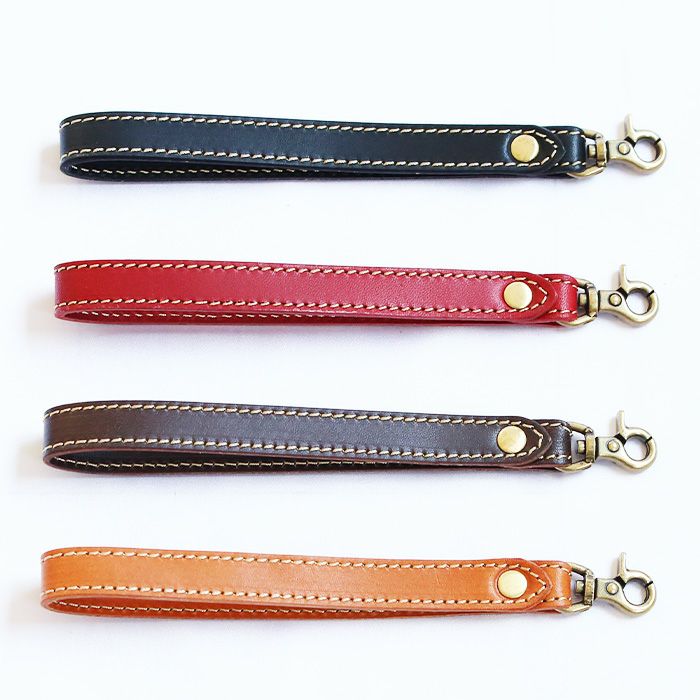 「クラッチバッグや長財布用のハンドストラップが欲しい」というお客様の声にお答えして作り上げたクラッチ用ストラップです。手を通しやすい様に、程良く長いストラップ丈を設定しています。ファスナーの引き手やDカンに引っ掛けてお使い下さい。