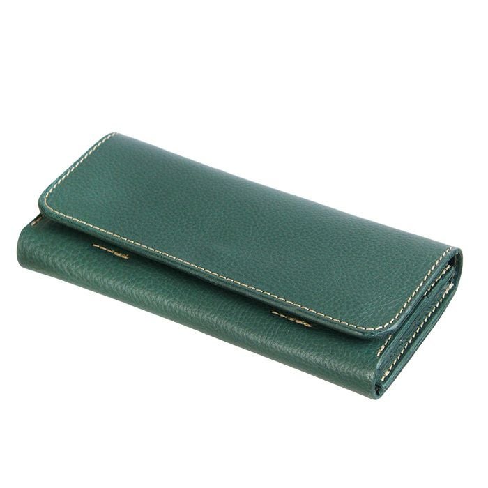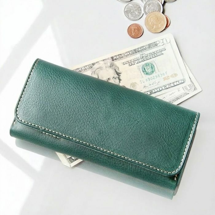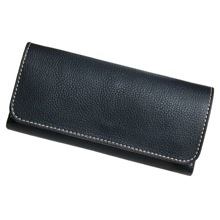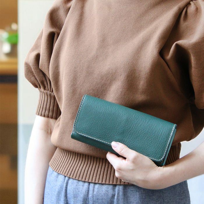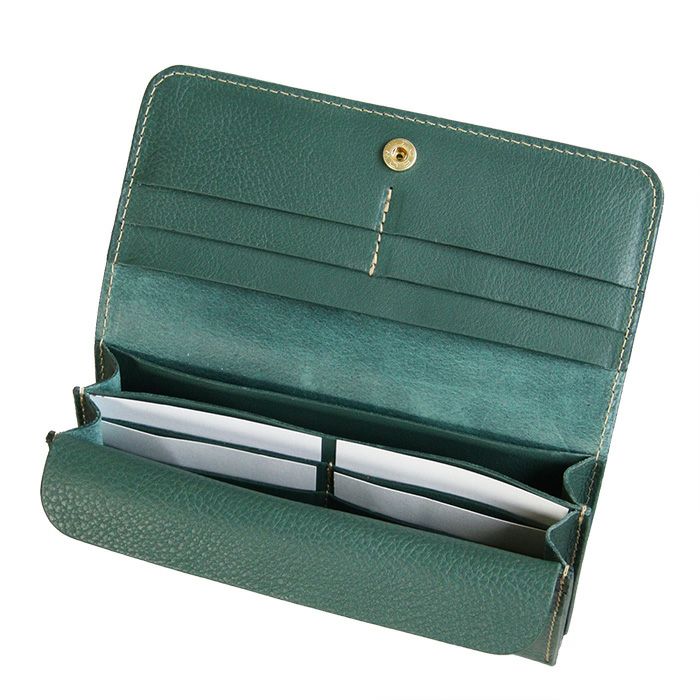 金具はホック一か所のみの使用と、大判な革を使用しながらも端正な仕事が光る長財布です。