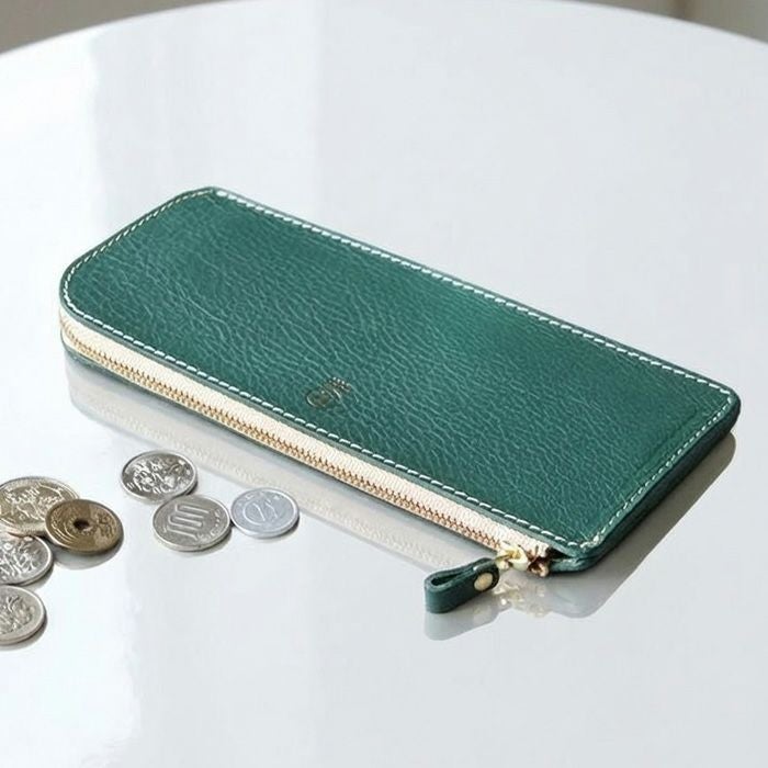 しっかりとお札が収まる・筒状の小銭入れから小銭が飛び出さない、等こだわって設計し、機能性も考慮して仕立てました。