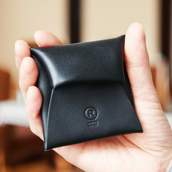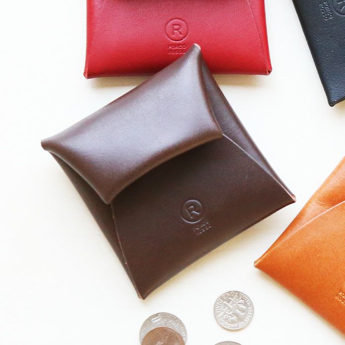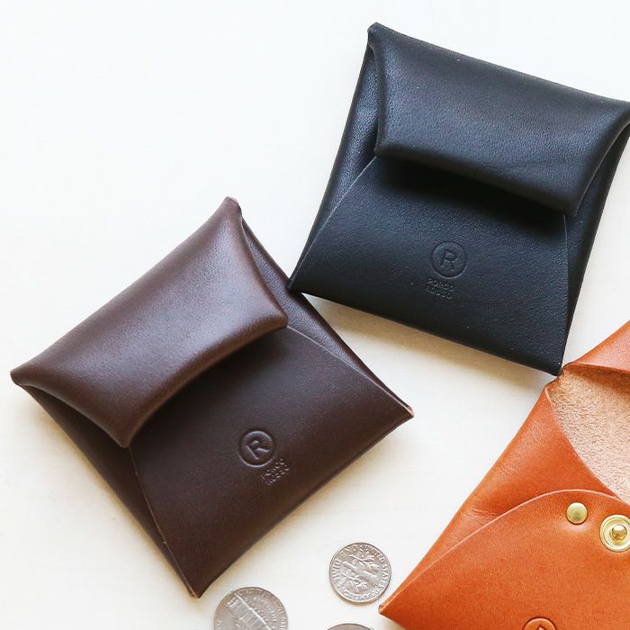 「折り紙」から発想を得た、シームレスコインケース。ミシンを使わず、カシメとホックのみで仕上げたユニークなデザインです。