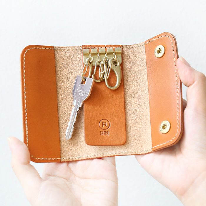 「ポルコロッソレザーの経年変化を楽しんで頂きたい」そんな想いから生まれたダブルホックのキーケース。
