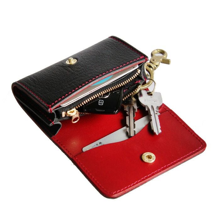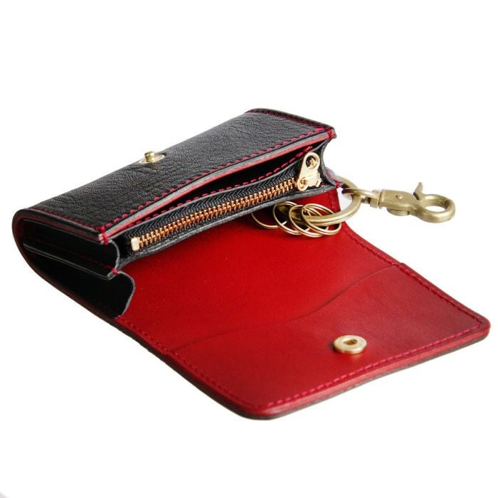 今までにはないブラック×レッドのツートンカラー仕様。 目を惹くレッドステッチ、内部にもこだわりレッドの革を張り合わせました。