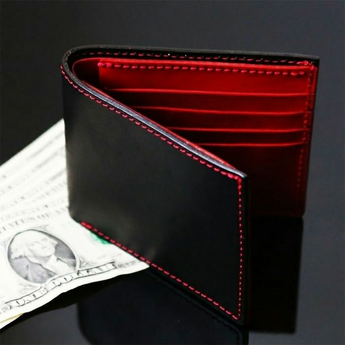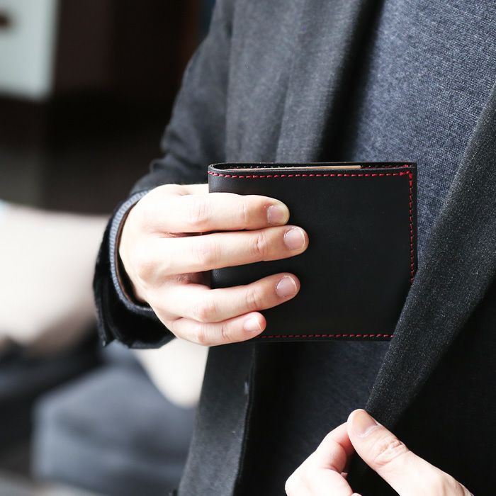 シンプルな作りだからスタイル、シーンを選ばずに使いやすい二つ折り財布。特にスーツとの相性は抜群に良く、