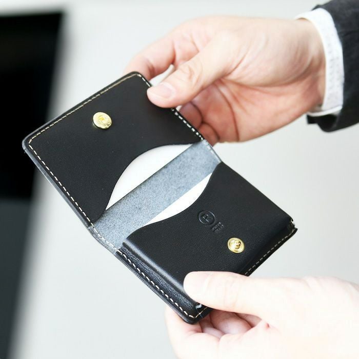 大人気の薄マチ名刺入れ。多くのお客さまから「ホックがついていたら更に便利なのに」とのお声を頂き、製品化いたしました。