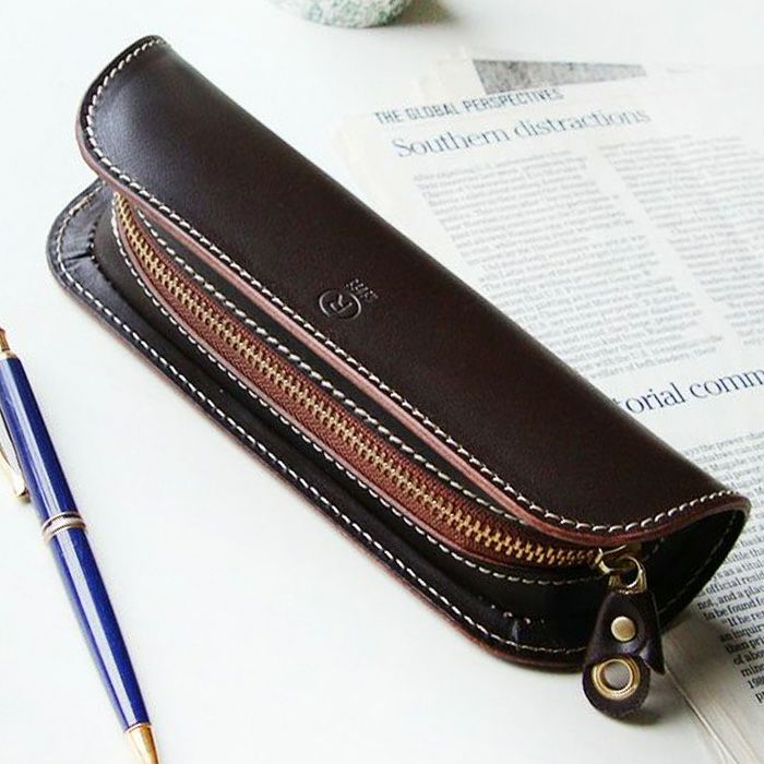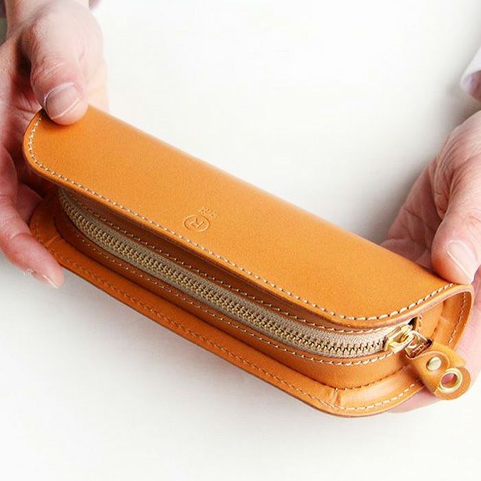 レザークラフトで用いられるステマチという技法を用いて製作したペンケースです。全体的に丸みを持たせ、美しい曲線的なシルエットにこだわりました。 厚みの加減を間違えるとシルエットが崩れてしまうため、パーツ毎に細かい調整を加えています。