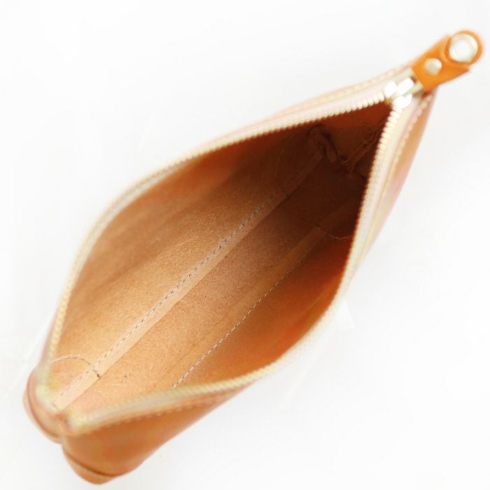 幅広く使用できるダックテールシルエットは男女問わず人気。コーナー補強や底面にハードレザーを沿わせたことで、耐久性にも 優れた製品に仕上がっています。ファスナーつまみは、指でつまみやすいように設計されているので開閉をスムーズに行えます。 約5cmのマチ幅があり、普段持ち歩く必需品をしっかりと収めれます。