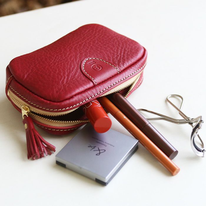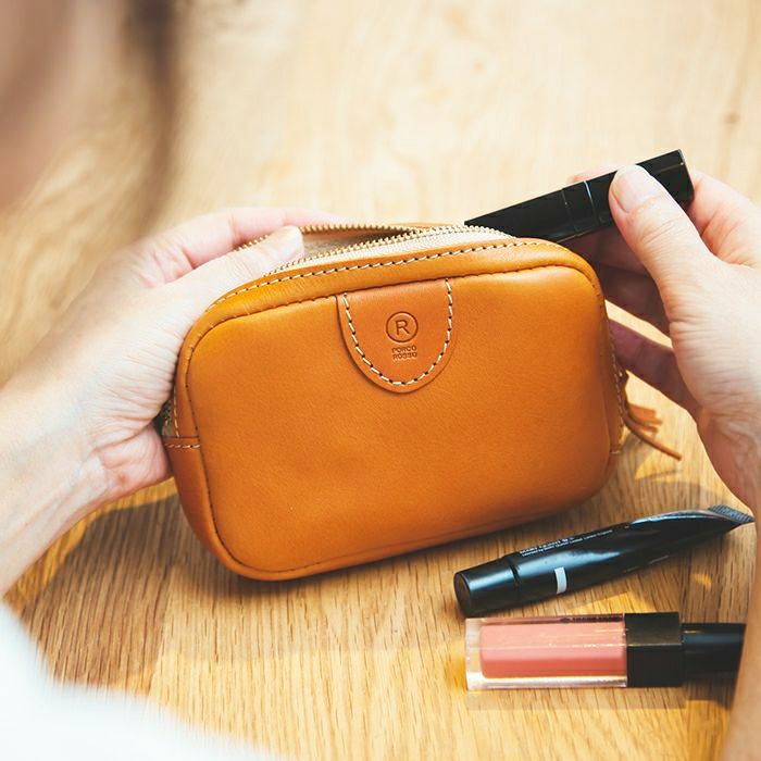 毎日使うお化粧道具、ちょっとした小物などを収納できるので、 一つあるといろんなシーンで重宝し、持ち運びにもぴったりなサイズ感のポーチです。