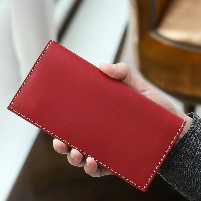 軽量化するために革の厚みや設計にこだわりパターンメイキングされたPORCO ROSSOの新定番長財布です。