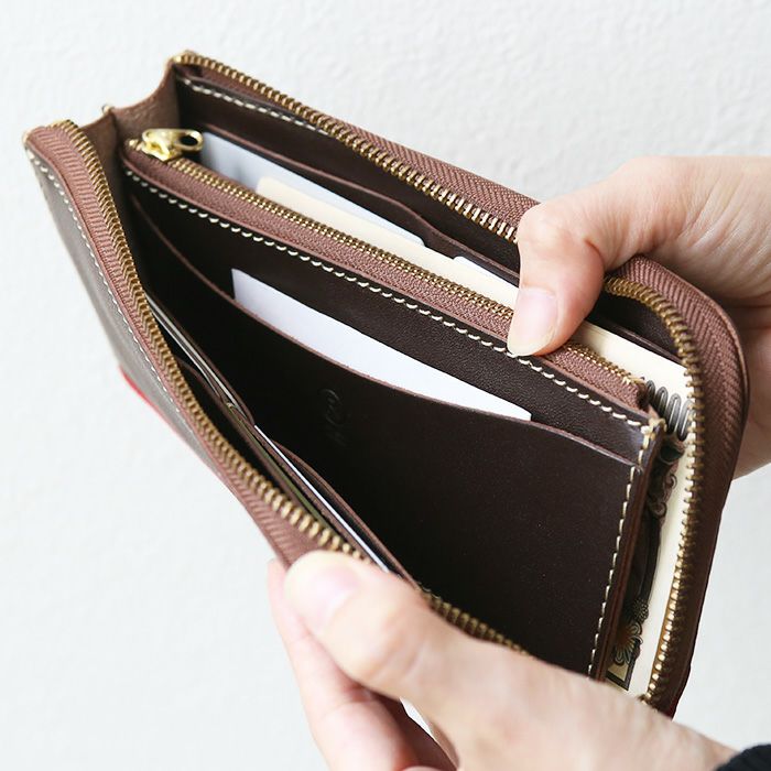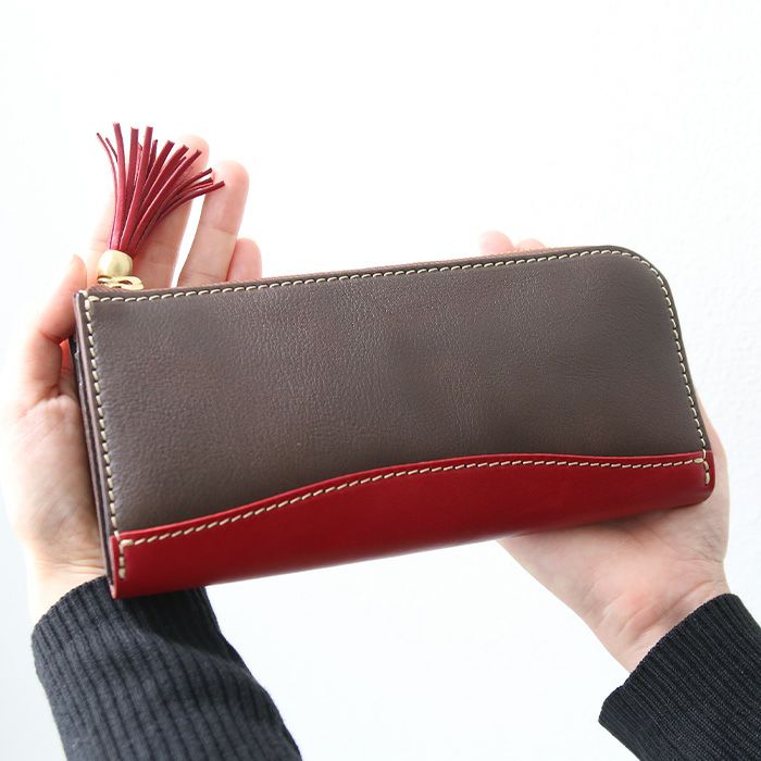 ロングウォレット(pr-wa-36)、コンパクトウォレット(pr-wa-35)に続いてL字タイプの2トーンウォレットをリリース。L字タイプは見開きが広く、お札の取り出しがしやすいのが◎。小銭入れにもファスナーを取り付けて滑落しないように仕立てています。