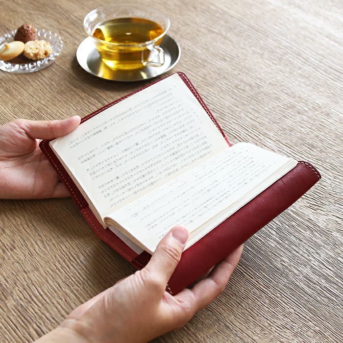 読書を重ねるたびに経年変化が見られる、自分だけの本革文庫本サイズのブックカバー。紙製のものだと味気ないイメージですが、本革の温かい肌ざわりがより一