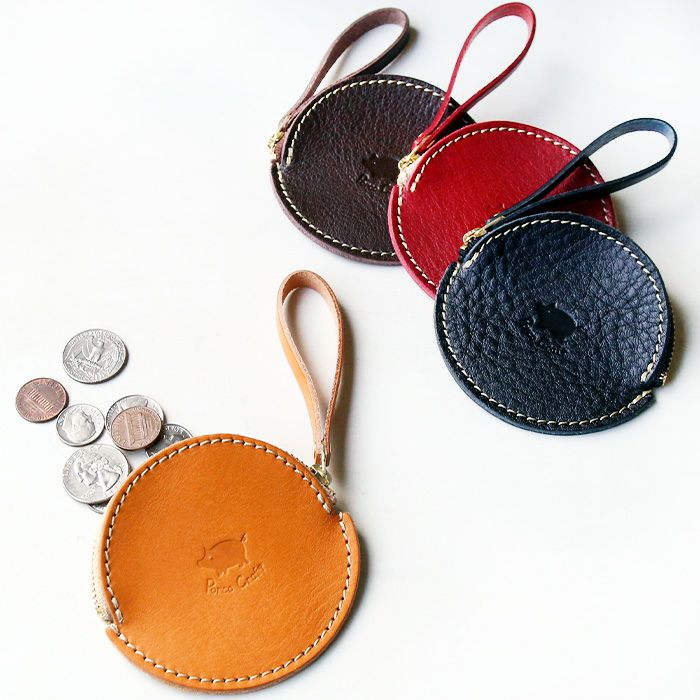 丸形のフォルムが可愛く、印象的なコインケース。