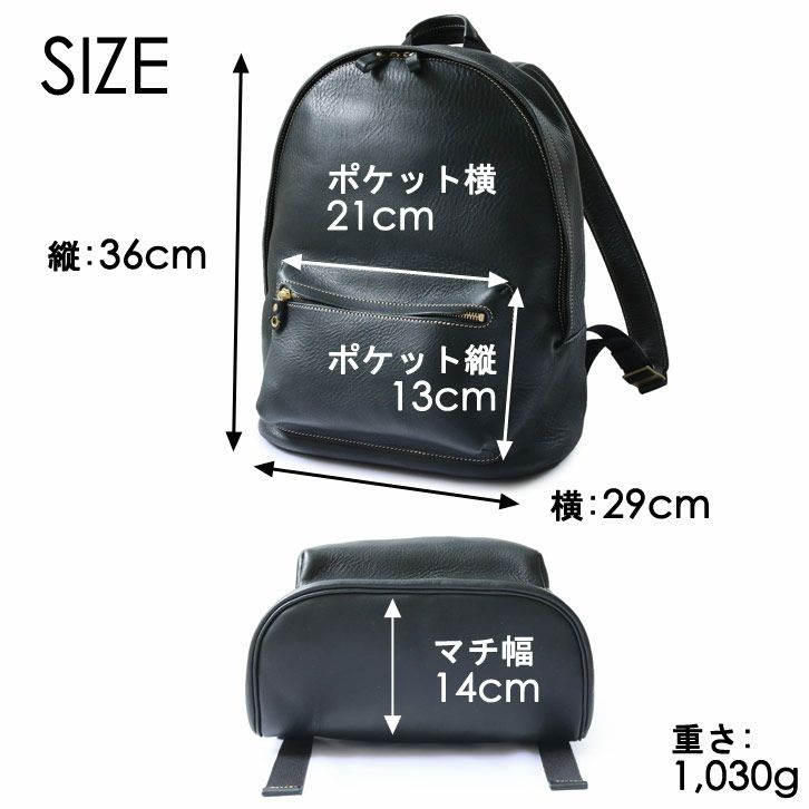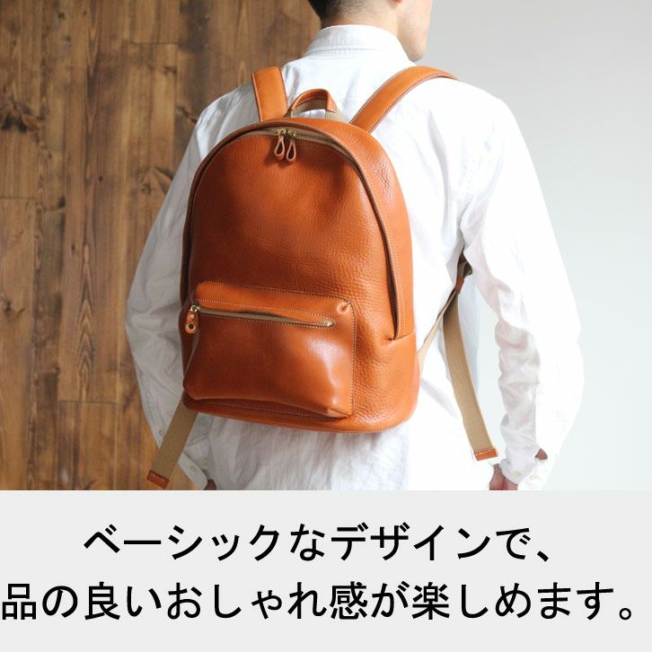 背面 時とともに革の表情が楽しめるシンプルで背負いやすいバックフェイス。