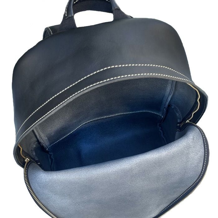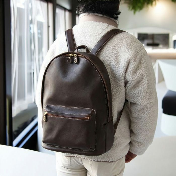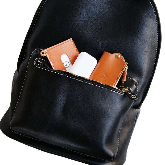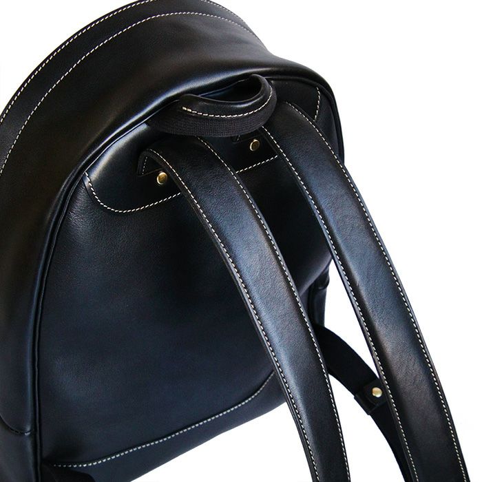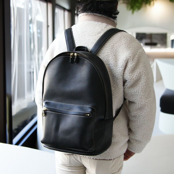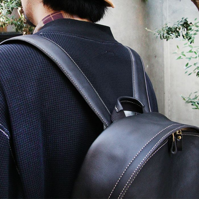 贅沢にオールレザーで仕立てたバックパック。既存モデルのミディアムデイパックをサイズアップした形が新登場。