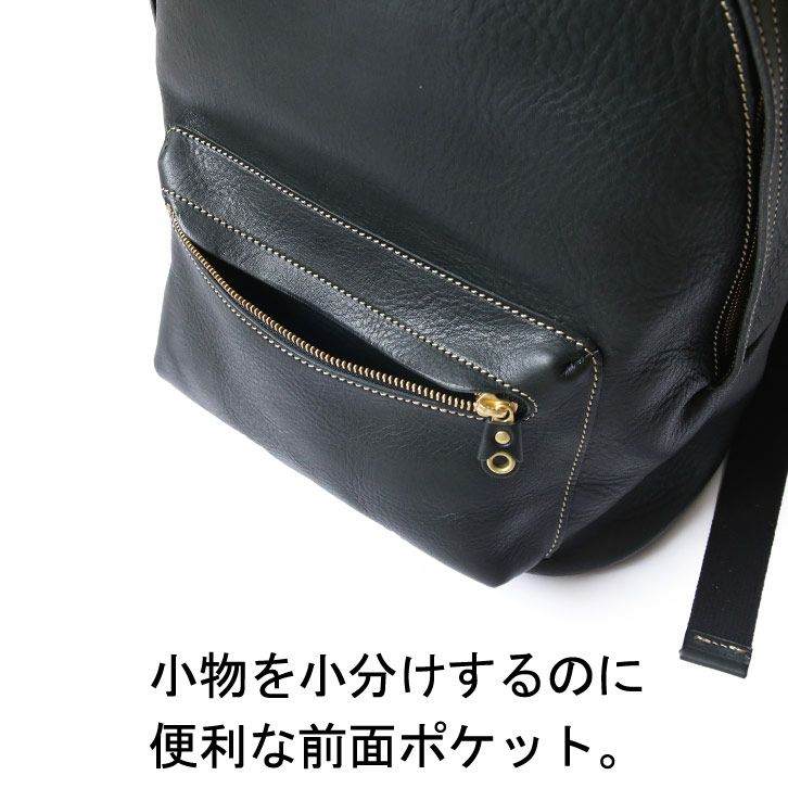 前面ポケット 二つ折り財布や携帯電話など、小物を小分けするのに便利なポケット。
