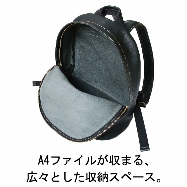 背面 時とともに革の表情が楽しめるシンプルで背負いやすいバックフェイス。