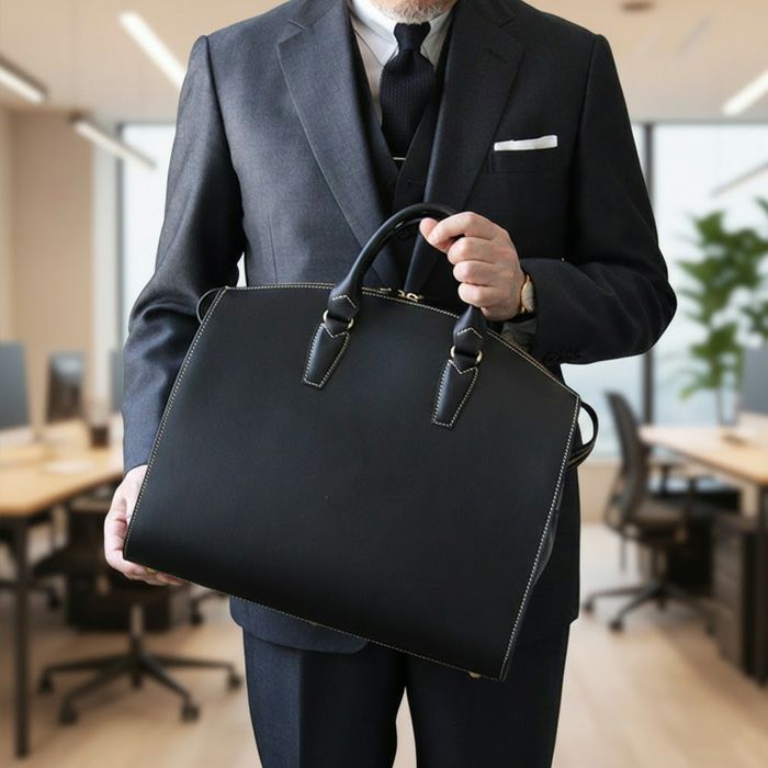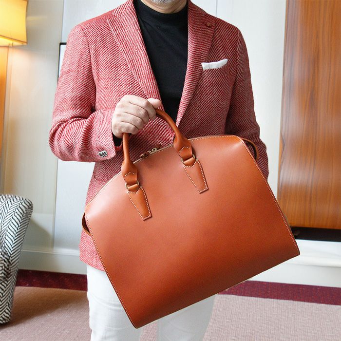 ダレスバッグとは一線を画した特徴的なフォルム、威厳さえ感じるその佇まいは、見る者を惹きつけ、使う者の品格を上げる一助となることをお約束します。